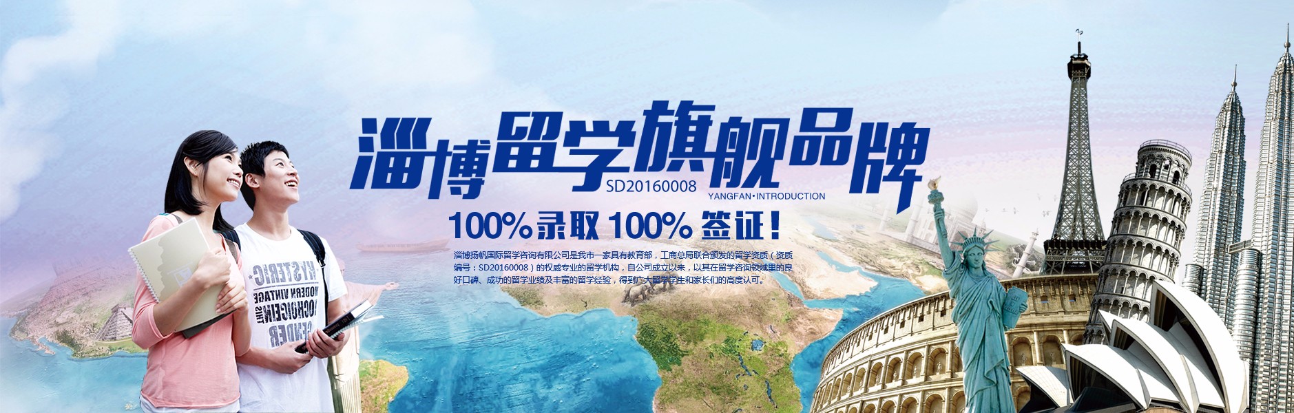 淄博揚帆國際留學咨詢有限公司是我市一家具有教育部,工商總局聯合頒發的留學資質(資質編號:SD20160008)的權威專業的留學機構,自公司成立以來,以其在留學咨詢領域里的良好口碑、成功的留學業績及豐富的留學經驗,得到廣大留學學生和家長們的高度認可。